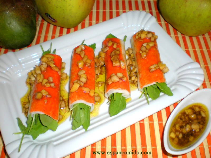 • Rollitos de cangrejo con vinagreta de mango y manzana