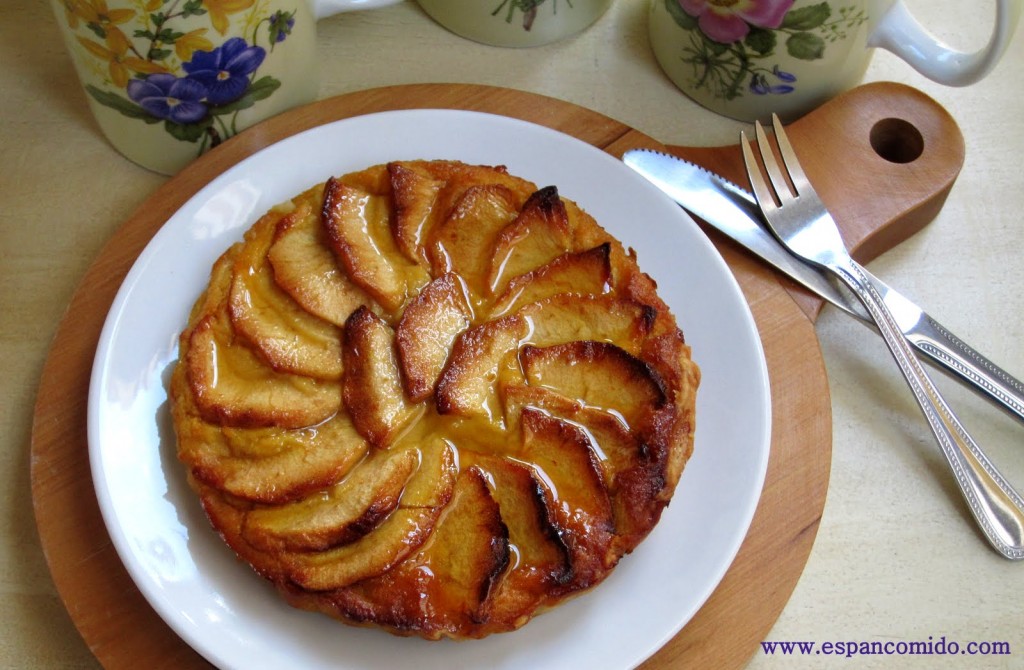 El procedimiento es muy similar a la preparación de la Quiche, sólo que esta vez, y por agilizar, la hemos hecho con hojaldre comprado. Se trata de una tarta ideal para acompañar un café o un té. Por influencia inglesa, mi madre no perdona su té de las cinco (a las seis en España, ¡por eso de que en Inglaterra es una hora menos!), así que resultó un éxito y como le estará durando  varios días, seguro que se acuerda de mí cada tarde…¡y yo de ella!
